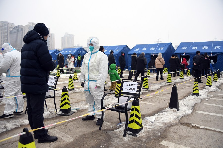 Photo taken on Jan. 24, 2022 shows a COVID-19 testing site in Haidian District in Beijing, capital of China. (Xinhua/Ren Chao)