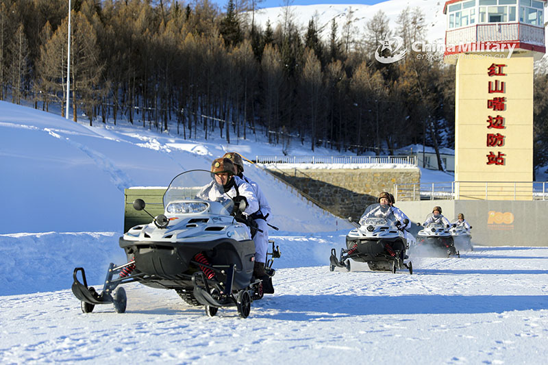 Border defense soldiers on patrol duty during Chinese Spring Festival