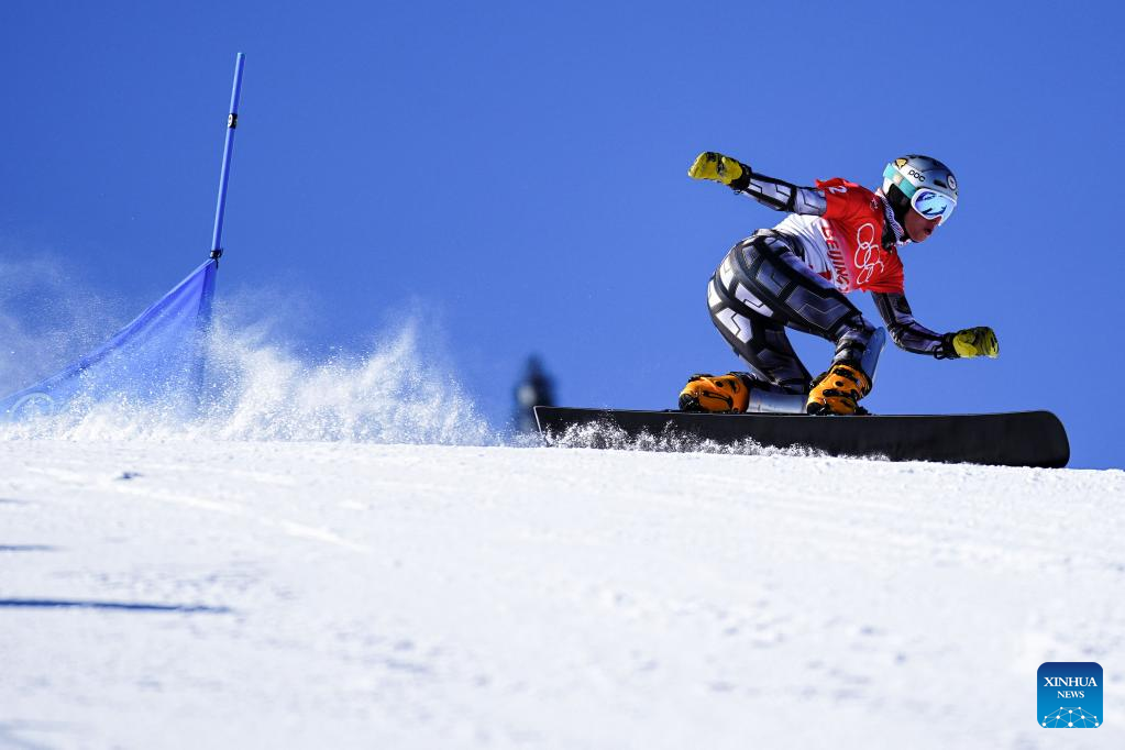 Ester Ledecka of the Czech Republic competes during snowboard women's parallel giant slalom qualification at the Genting Snow Park in Zhangjiakou, north China's Hebei Province, Feb. 8, 2022. (Xinhua/Xu Chang)