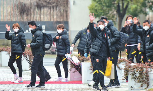 Members of the victorious Chinese women's team and support staff arrive in a designated quarantine hotel in Suzhou, Jiangsu province, on Tuesday, after winning the 2022 Asian Football Confederation Women's Asian Cup final in Navi Mumbai, India, on Sunday. GUAN YUNAN/FOR CHINA DAILY