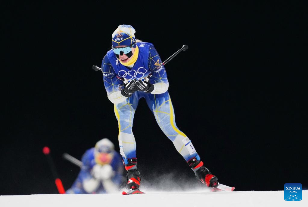 Jonna Sundling of Sweden competes during the women's cross-country skiing sprint free final of the Beijing 2022 Winter Olympics at Zhangjiakou National Cross-country Skiing Centre in Zhangjiakou, north China's Hebei Province, Feb. 8, 2022. (Xinhua/Mu Yu)
