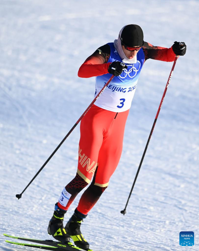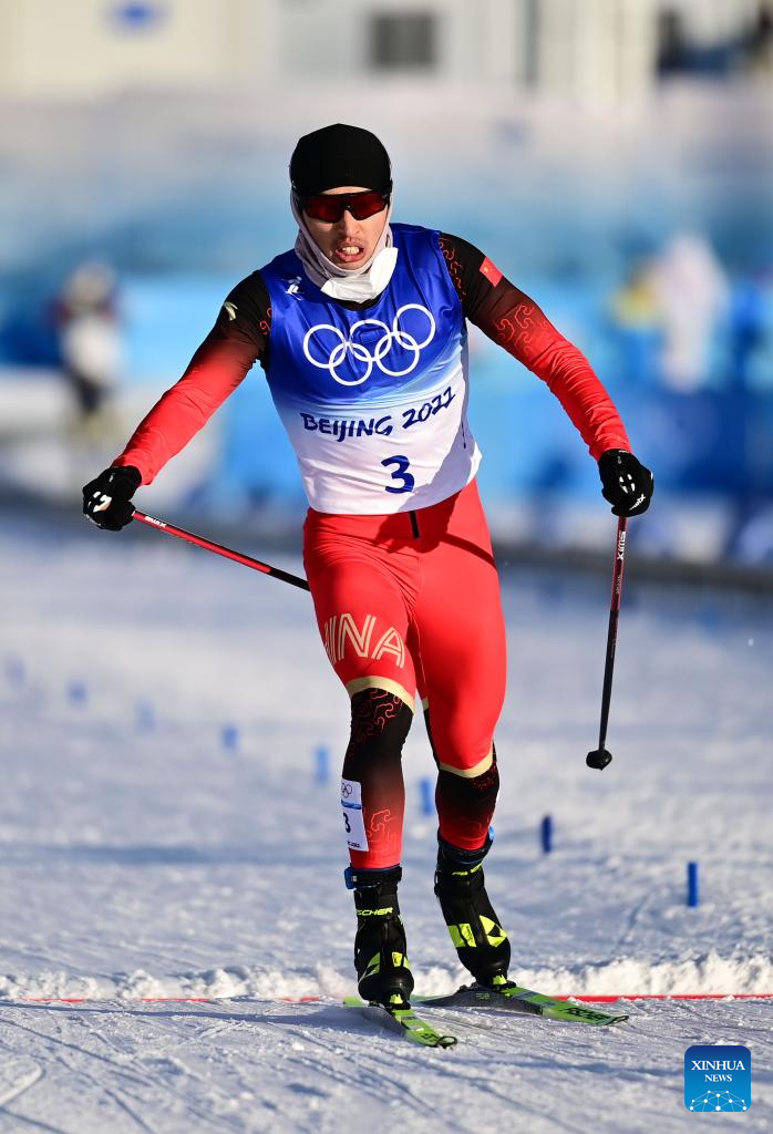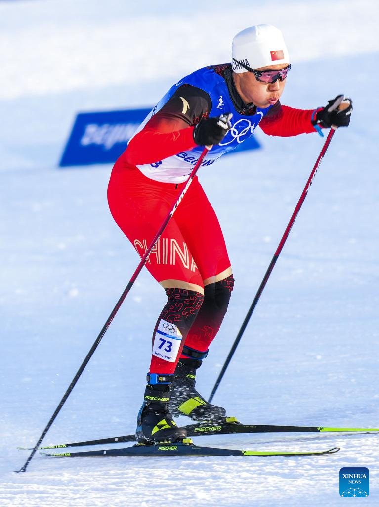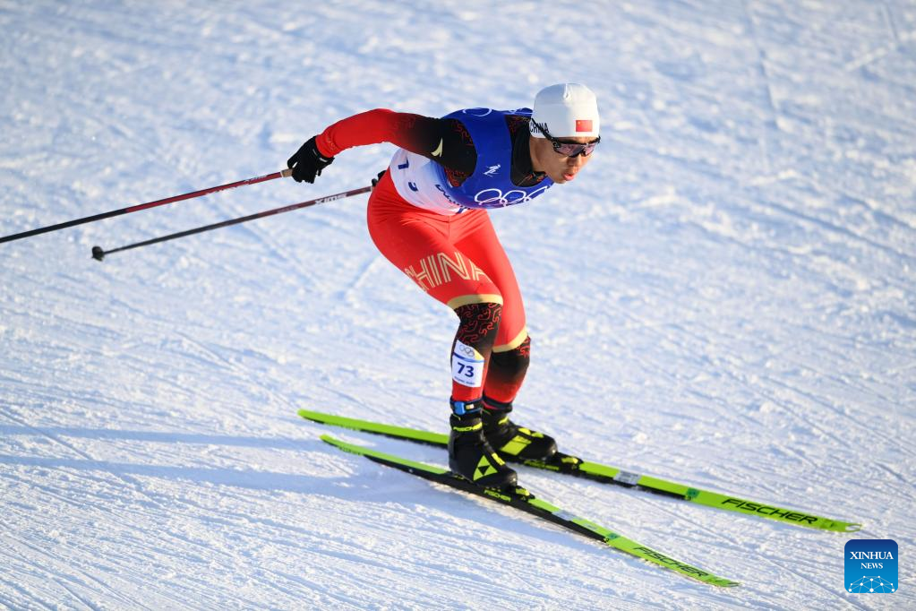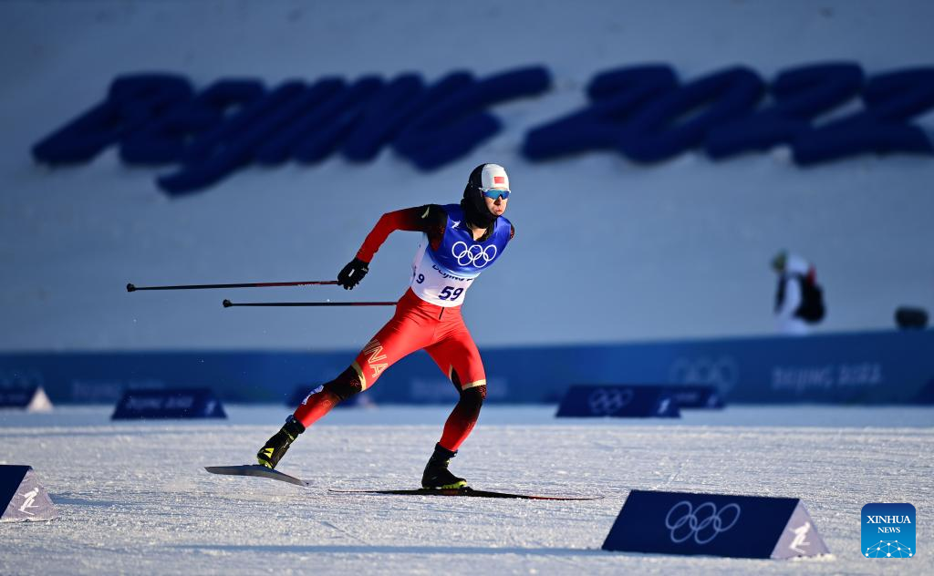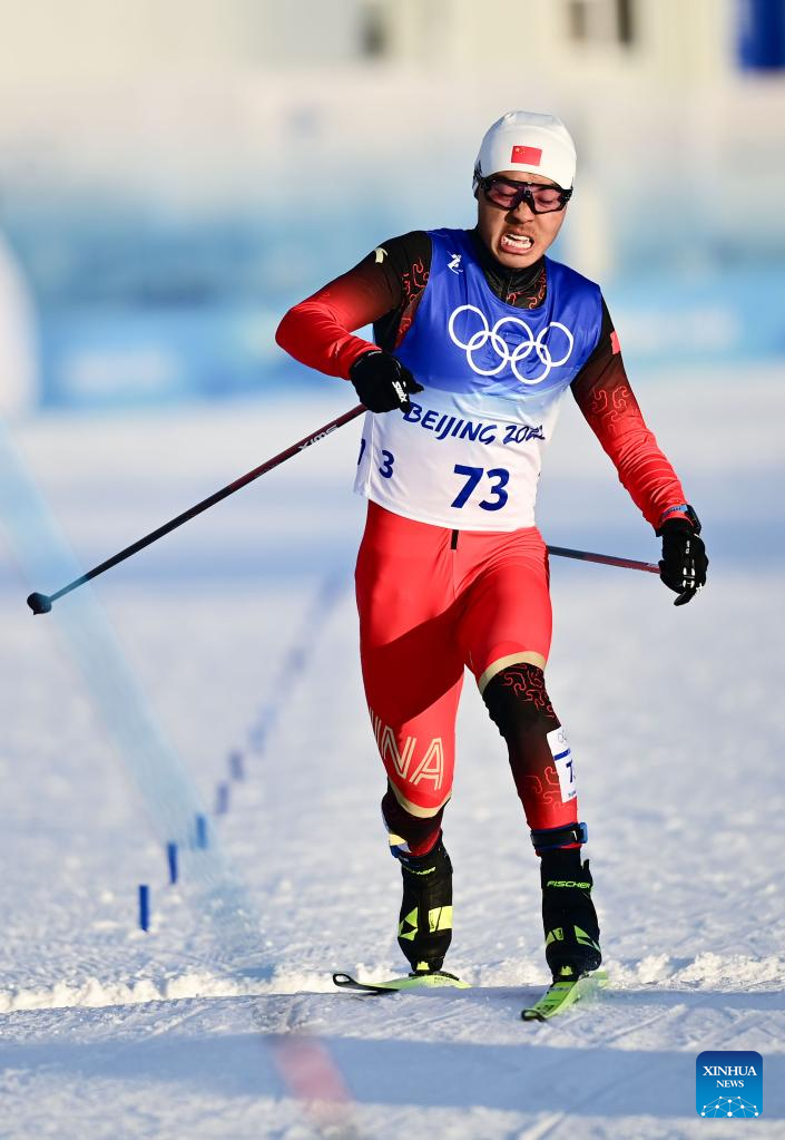 Shang Jincai of China competes during the cross-country skiing men's sprint free qualification match of Beijing 2022 Winter Olympics at Zhangjiakou National Cross-country Skiing Centre in Zhangjiakou, north China's Hebei Province, Feb. 8, 2022. (Xinhua/Zhang HongXiang)