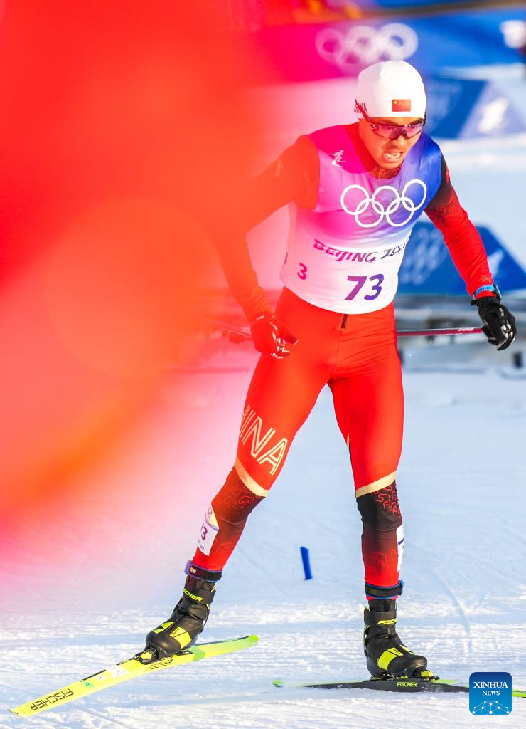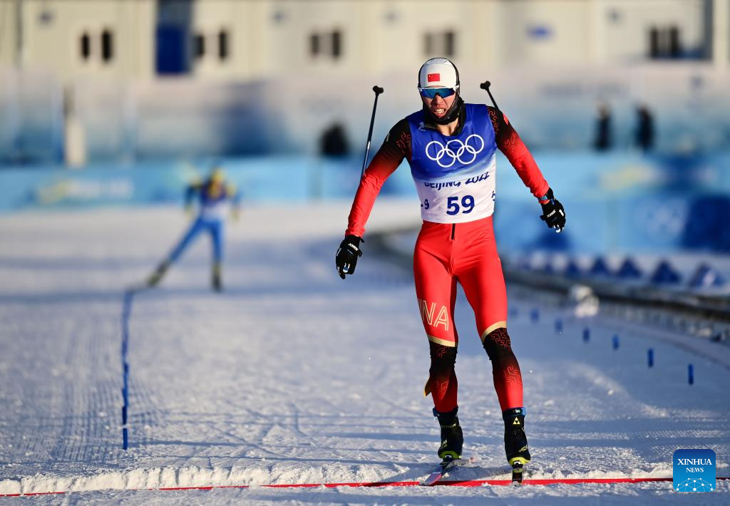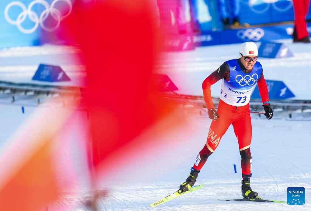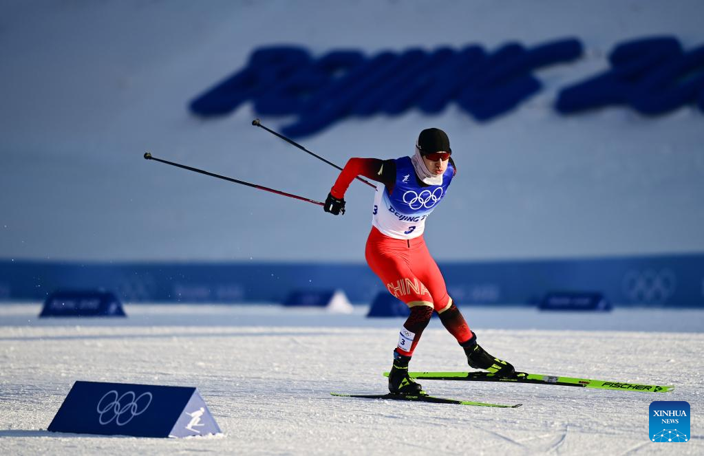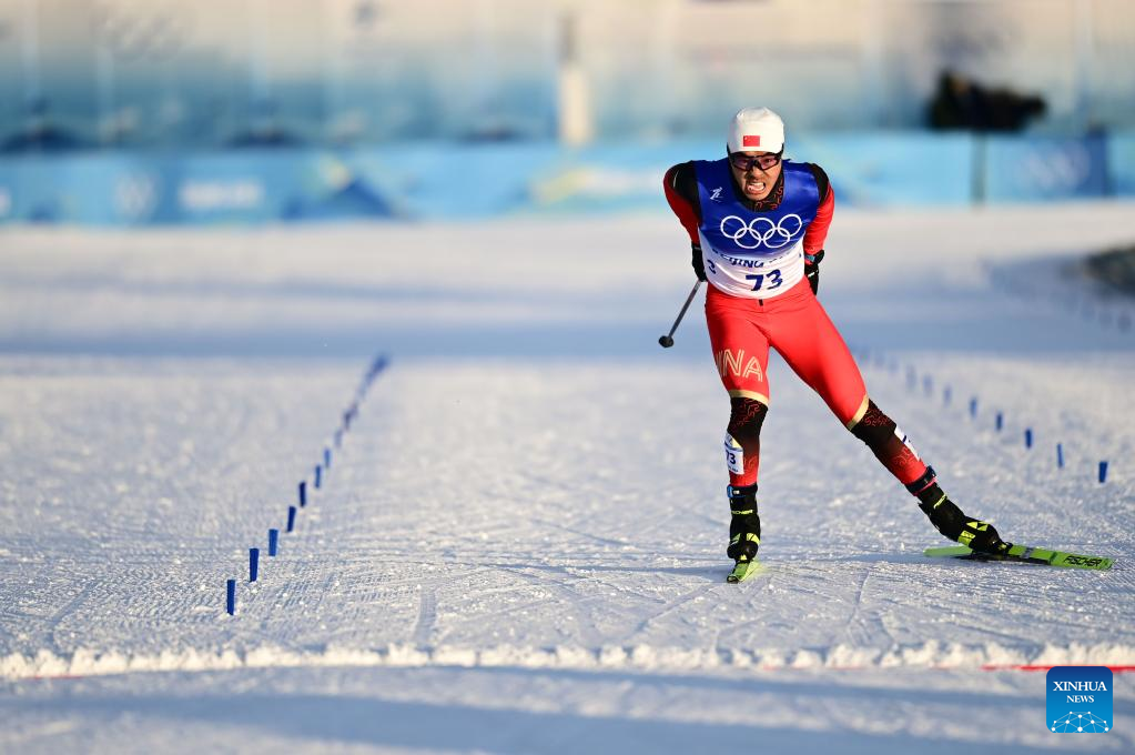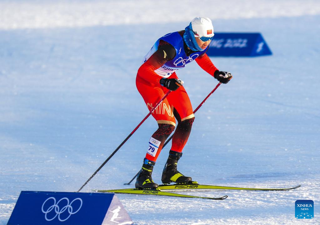 Shang Jincai of China competes during the cross-country skiing men's sprint free qualification match of Beijing 2022 Winter Olympics at Zhangjiakou National Cross-country Skiing Centre in Zhangjiakou, north China's Hebei Province, Feb. 8, 2022. (Xinhua/Zhang HongXiang)