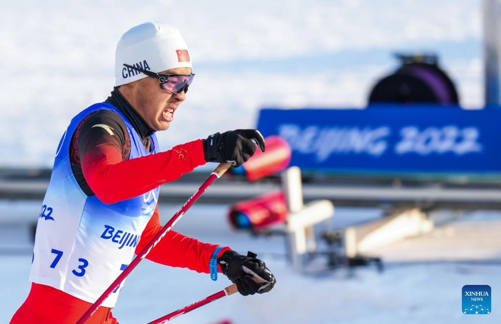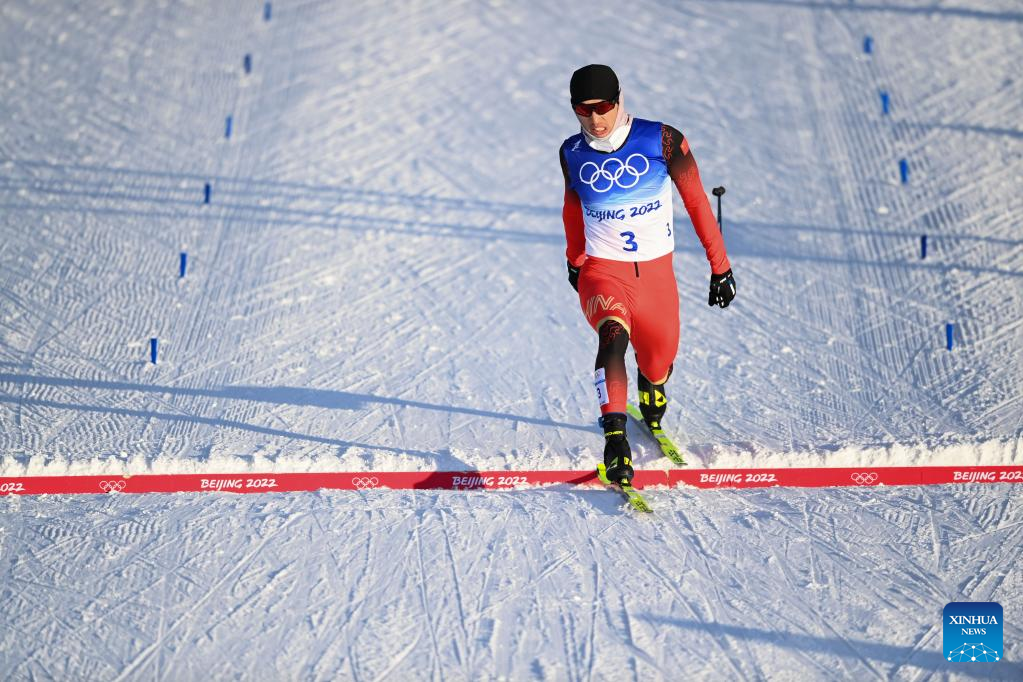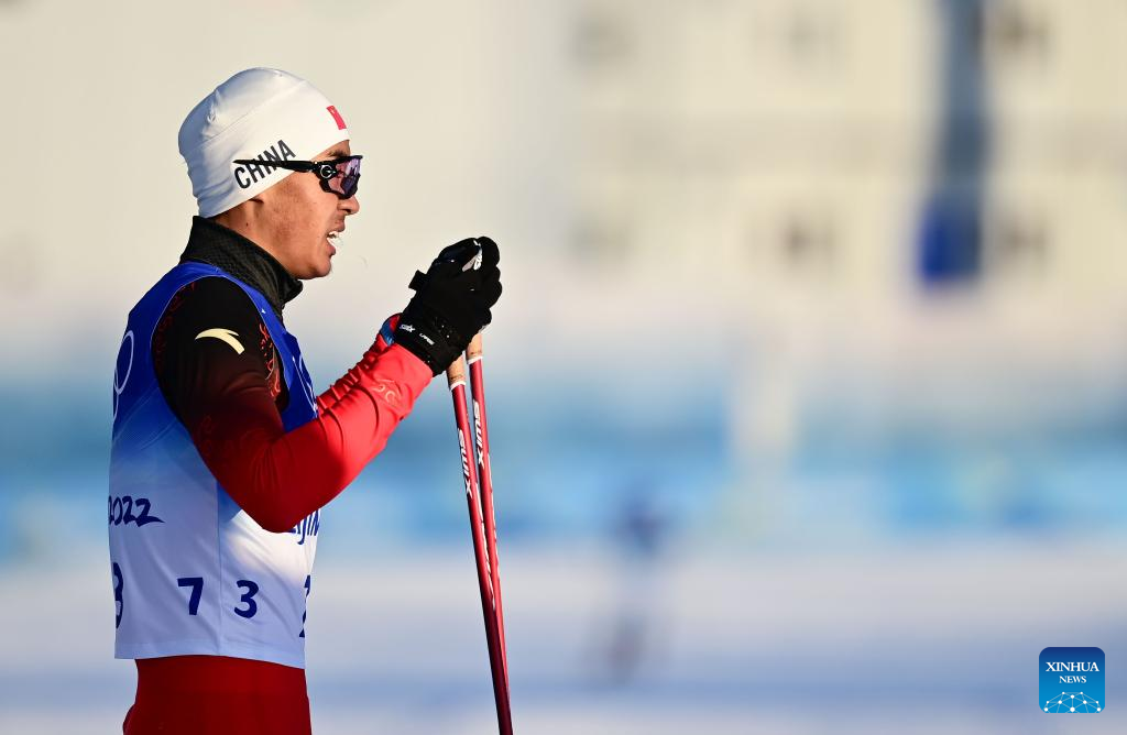 Photo taken on Feb. 8, 2022 shows Cirenzhandui of China after the cross-country skiing men's sprint free qulification match of Beijing 2022 Winter Olympics at Zhangjiakou National Cross-country Skiing Centre in Zhangjiakou, north China's Hebei Province. (Xinhua/Zhang Hongxiang)