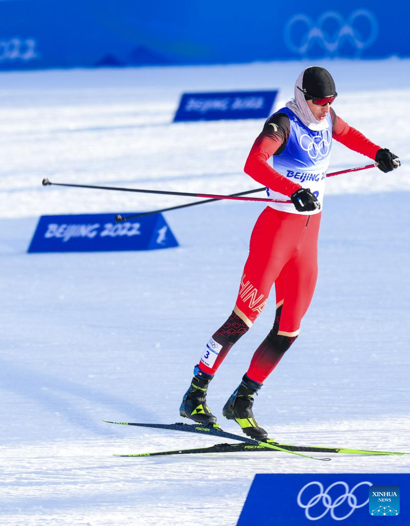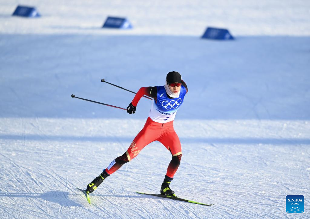 Shang Jincai of China competes during the cross-country skiing men's sprint free qualification match of Beijing 2022 Winter Olympics at Zhangjiakou National Cross-country Skiing Centre in Zhangjiakou, north China's Hebei Province, Feb. 8, 2022. (Xinhua/ZHX)