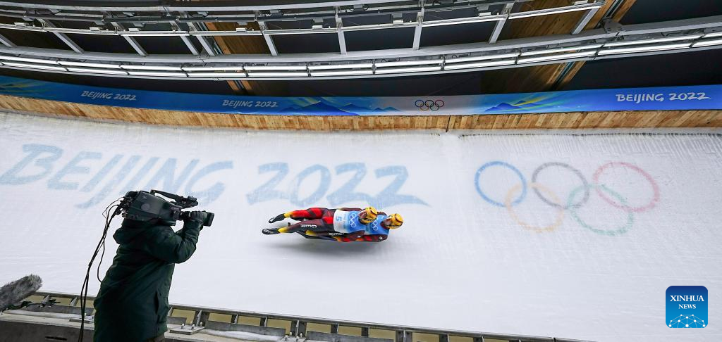 YANQING, Beijing, Feb. 9 (Xinhua) -- German pairs made it a one-two finish in the luge doubles at the Beijing Winter Olympics here on Wednesday.