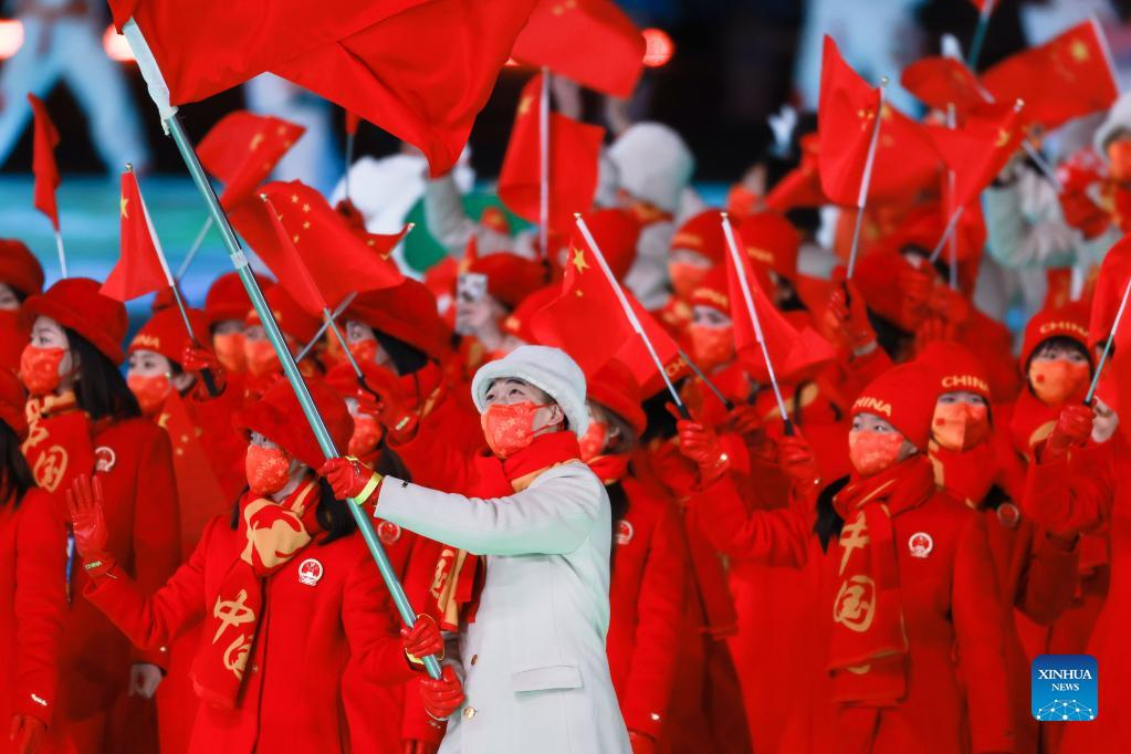 The Olympic delegation of the People's Republic of China parade into the National Stadium during the opening ceremony of the Beijing 2022 Olympic Winter Games in Beijing, capital of China, Feb. 4, 2022. (Xinhua/Liu Xu)