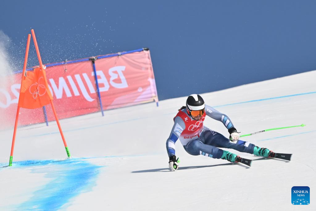 Barnabas Szollos of Israel competes during alpine skiing men's alpine combined at the National Alpine Skiing Centre in Yanqing District, Beijing, capital of China, Feb. 10, 2022. (Xinhua/Chen Yichen)