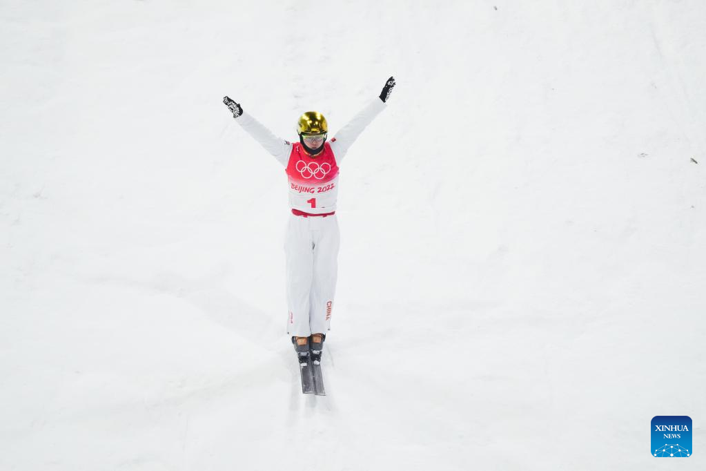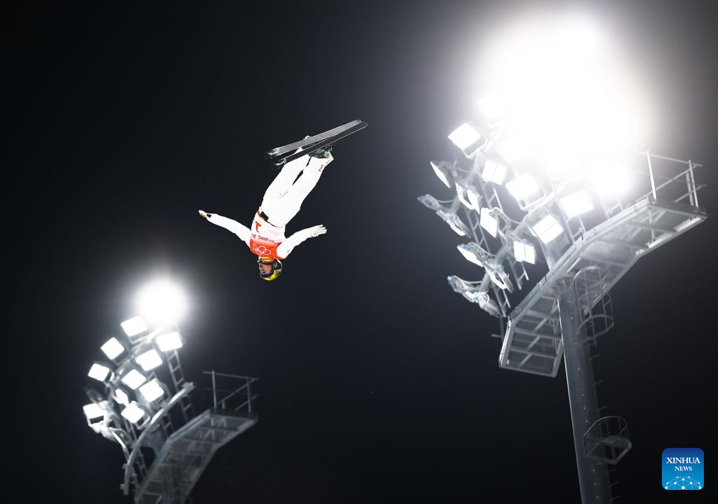 Qi Guangpu of China competes during the freestyle skiing mixed team aerials final at Genting Snow Park in Zhangjiakou, north China's Hebei Province, Feb. 10, 2022. (Xinhua/Fei Maohua)
