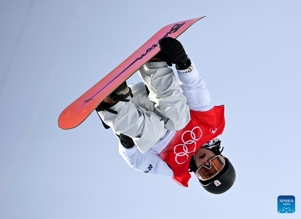 Hirano Ayumu of Japan competes during the men's snowboard halfpipe final at Genting Snow Park in Zhangjiakou, north China's Hebei Province, Feb. 11, 2022. (Xinhua/Feng Kaihua)