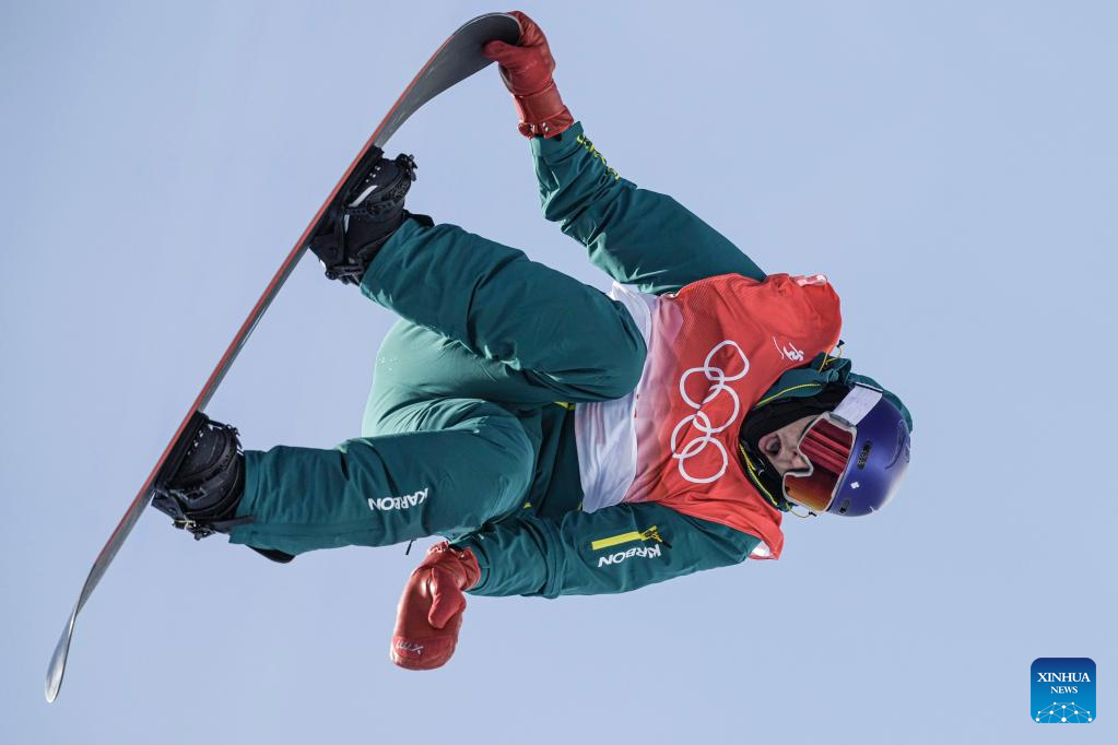 Scotty James of Australia competes during the men's snowboard halfpipe final at Genting Snow Park in Zhangjiakou, north China's Hebei Province, Feb. 11, 2022. (Xinhua/Wu Zhuang)