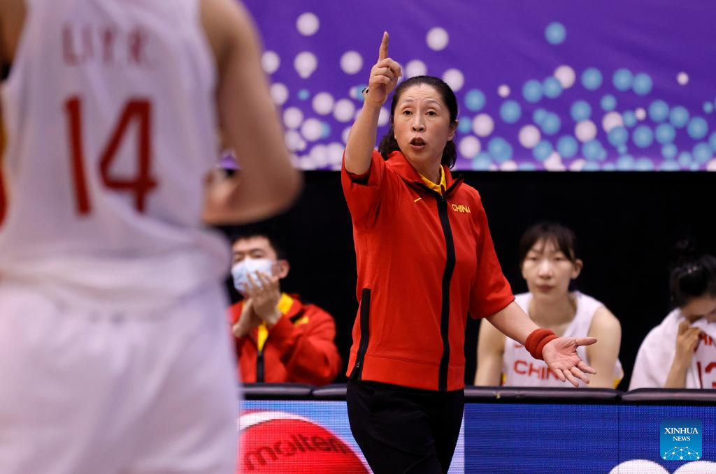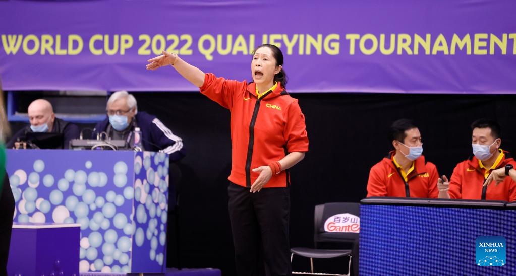 Coach Zheng Wei of China gestures during the FIBA Women's World Cup Qualifying basketball match between China and Nigeria in Belgrade, Serbia on Feb. 10, 2022. (Photo by Predrag Milosavljevic/Xinhua)