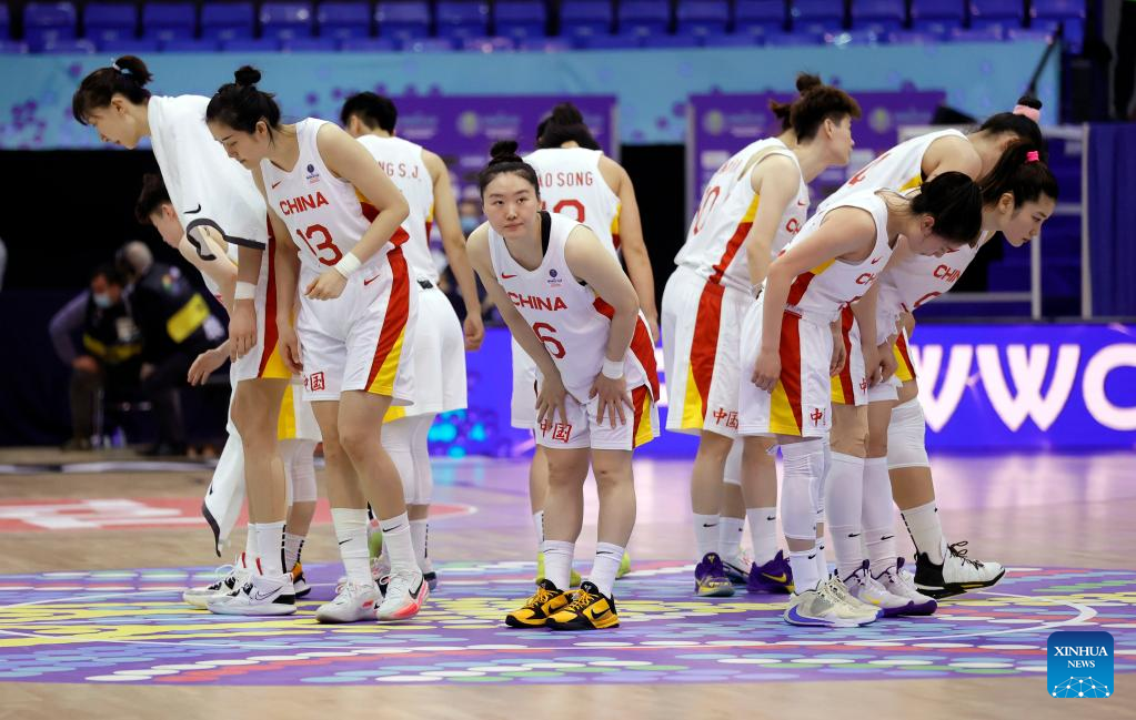 Players of China bow after the FIBA Women's World Cup Qualifying basketball match between China and Nigeria in Belgrade, Serbia on Feb. 10, 2022. (Photo by Predrag Milosavljevic/Xinhua)