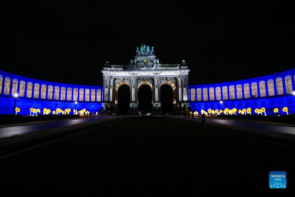 Photo taken on Feb. 11, 2022 shows artistic light installations during the Bright Brussels Festival in Brussels, capital of Belgium. (Xinhua/Zhang Cheng)