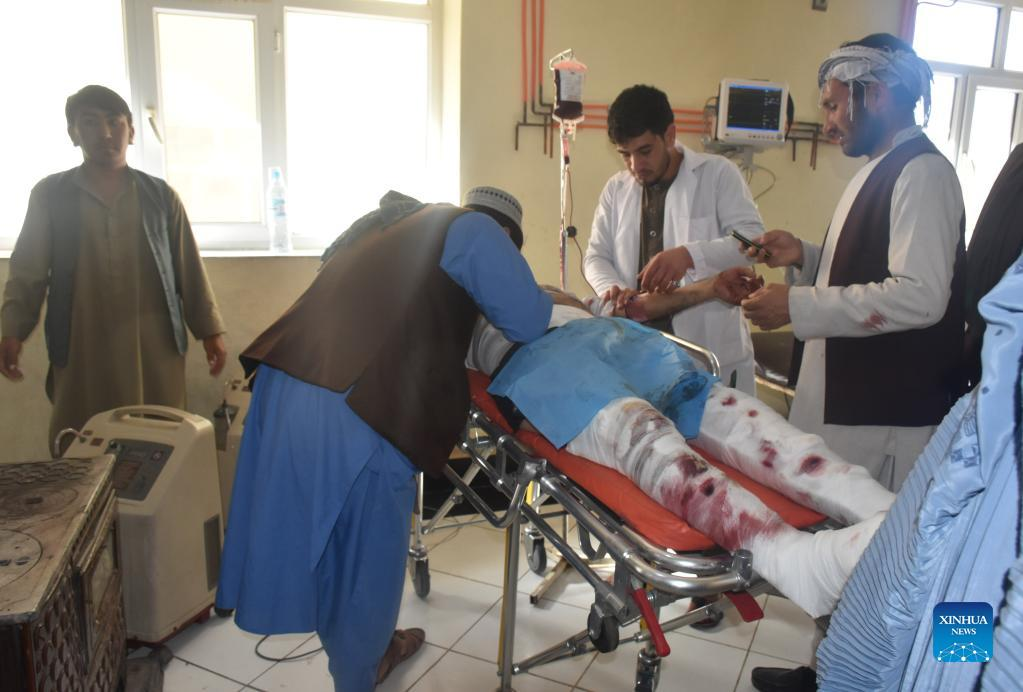 Injured people receive medical treatment at a hospital in Qala-e-Naw, capital of Badghis Province, Afghanistan, Feb. 11, 2022. One person was dead and 14 others were injured after an explosive device went off in front of the main mosque in Qala-e-Naw, provincial health chief Mohammad Asif Qanet said on Friday. (Photo by Mashal/Xinhua)