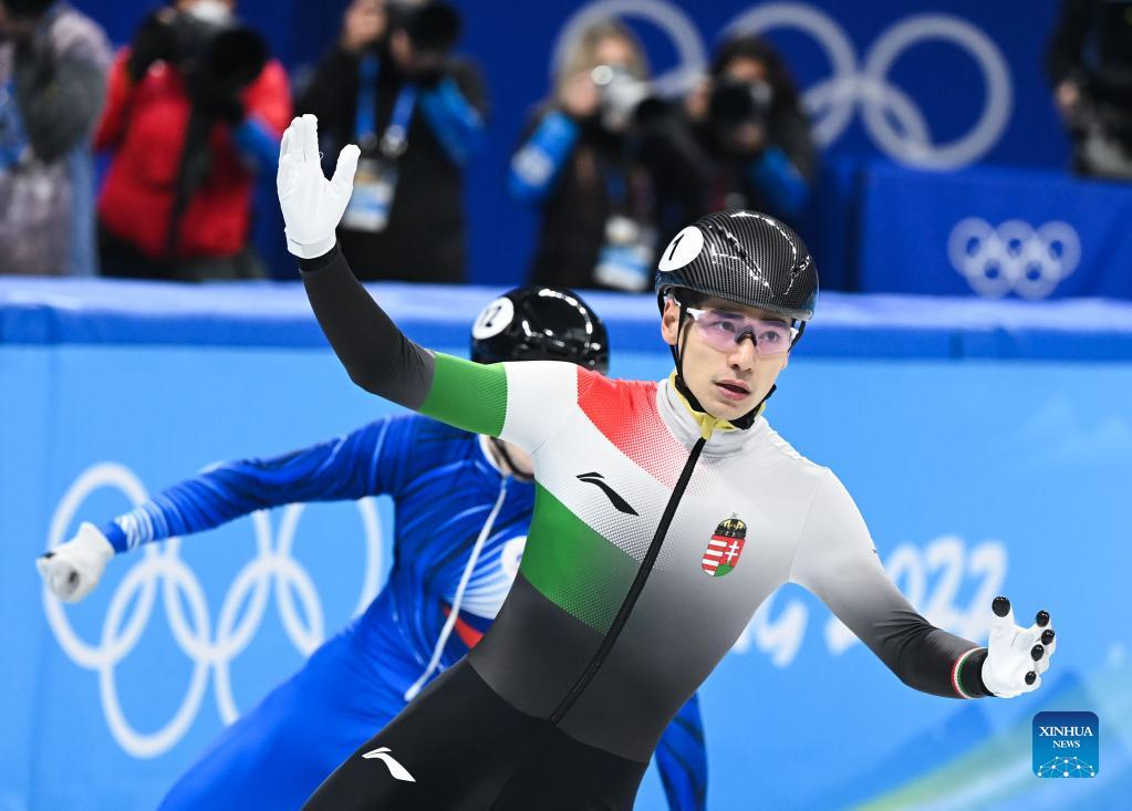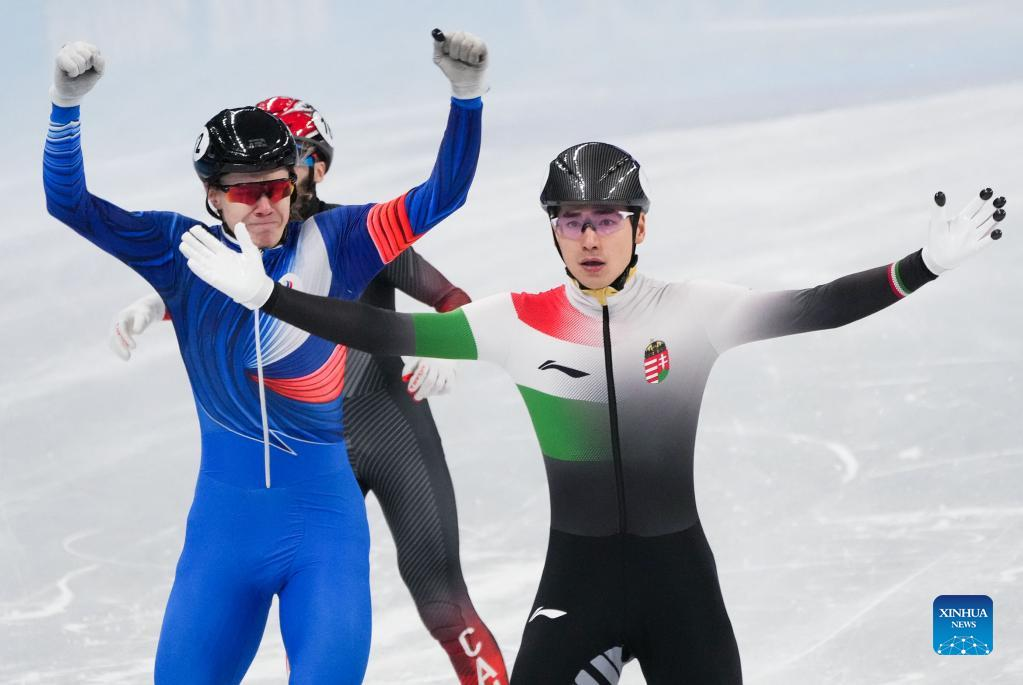 BEIJING, Feb. 13 (Xinhua) -- Liu Shaoang of Hungary won the men's 500m short track speed skating gold in 40.338 seconds at the Beijing Winter Olympics here on Sunday.