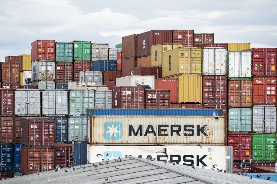 Containers are seen at the Port of Baltimore in Maryland, the United States, Oct. 26, 2021. (Xinhua/Liu Jie)