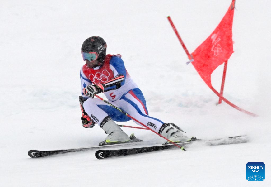 Mathieu Faivre of France competes during the alpine skiing men's giant slalom at National Alpine Skiing Centre in Yanqing District, Beijing, capital of China, Feb. 13, 2022. (Xinhua/Zhang Chenlin)