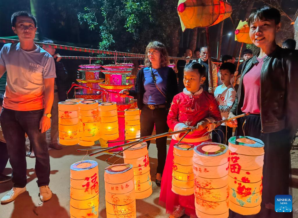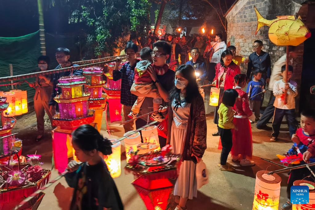 People "send lights" to celebrate and express their wishes and expectations, a tradition dating back more than 100 years, in Wenchang, south China's Hainan Province, on Feb. 12, 2022. (Xinhua/Zhou Huimin)