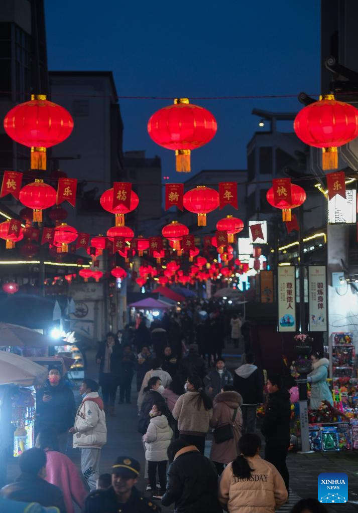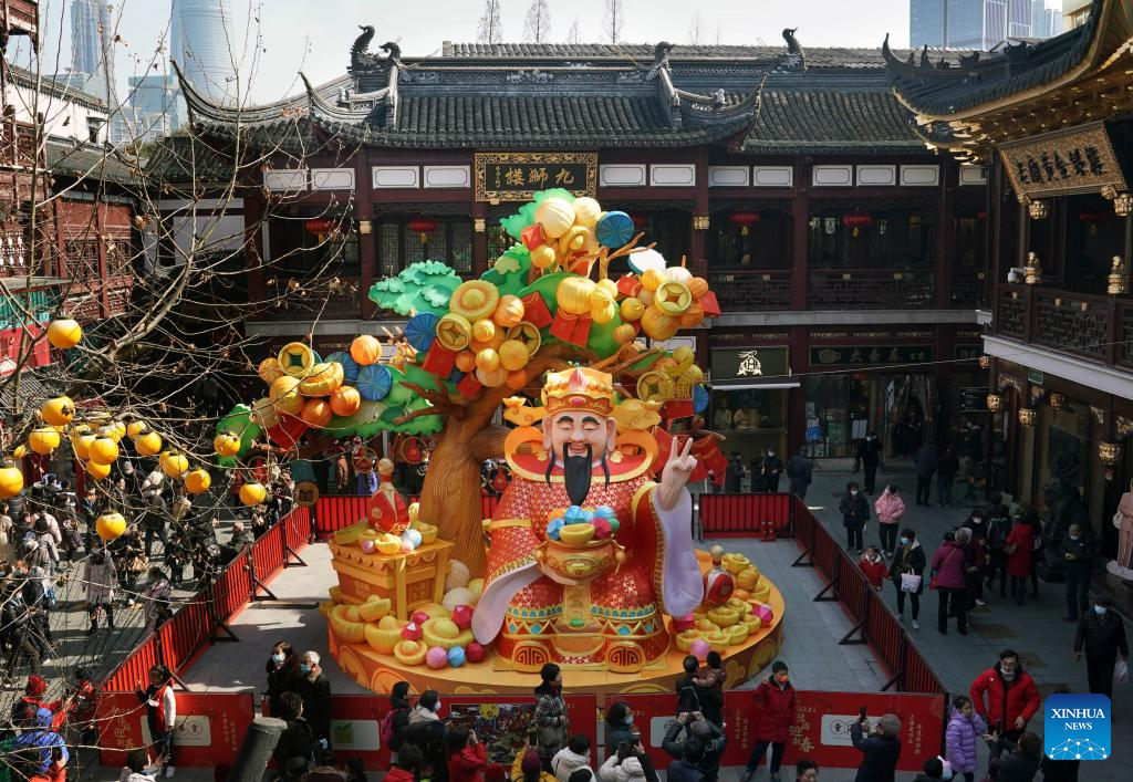 People visit Yuyuan Garden to celebrate the upcoming Lantern Festival in east China's Shanghai, Feb. 14, 2022. The Lantern Festival, the 15th day of the first month of the Chinese lunar calendar, falls on Feb. 15 this year. (Xinhua/Liu Ying)