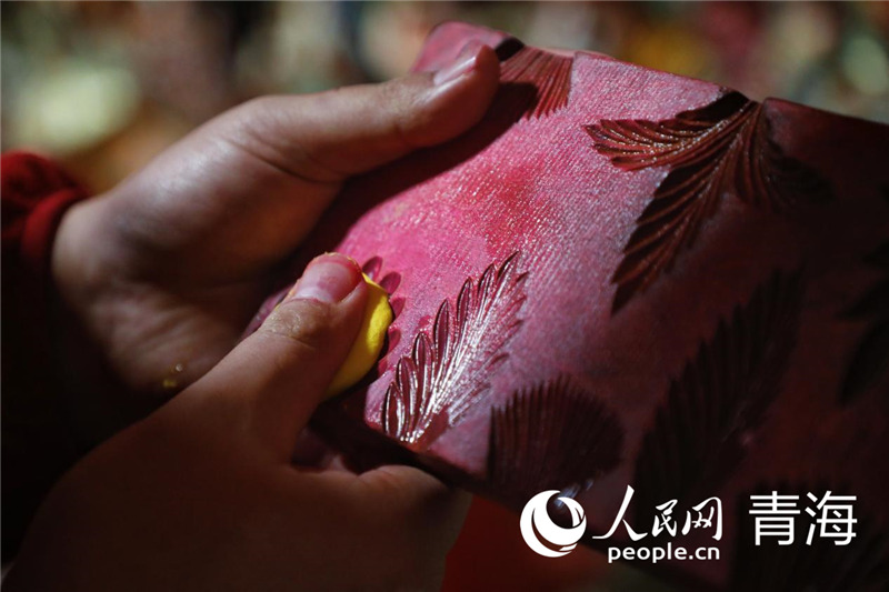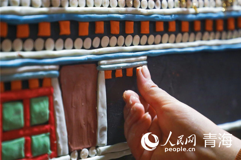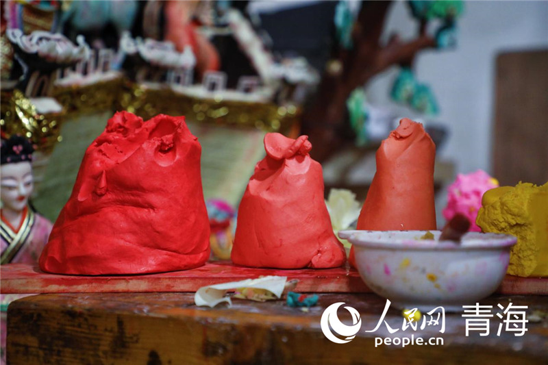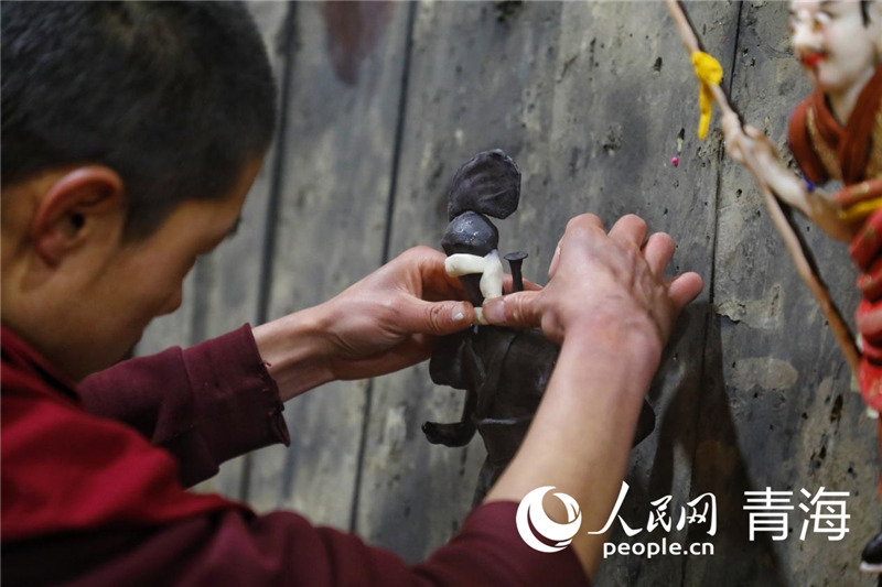 A monk artist makes a butter sculpture. (People’s Daily Online/Zhang Haopeng)