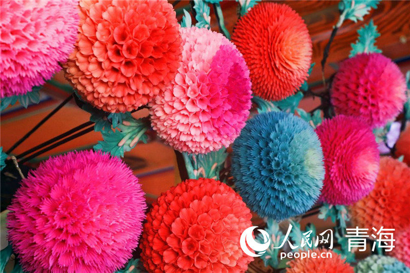 Photo shows butter flowers at the Kumbum Monastery in Huangzhong district, Xining city, northwest China’s Qinghai Province. (People’s Daily Online/Zhang Haopeng)