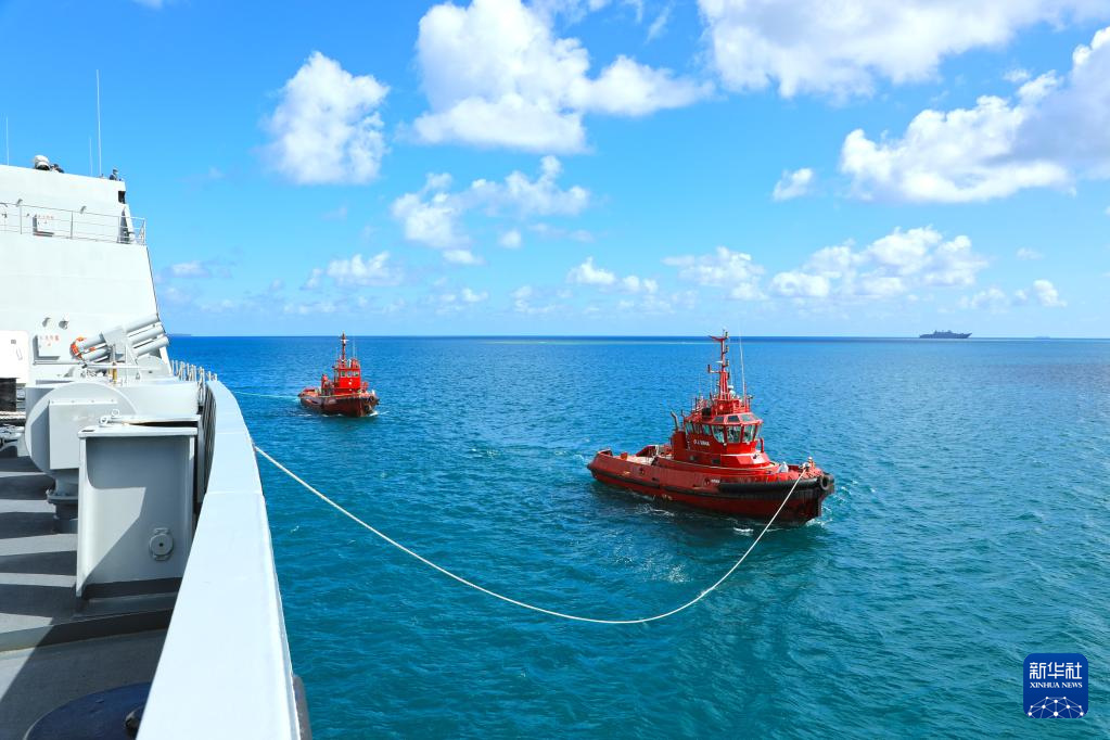 A flotilla of the People's Liberation Army (PLA) Navy carring relief supplies arrives in Nuku' alofa, Tonga, Feb. 15, 2022.(Photo by Xue Chengqing/Xinhua)