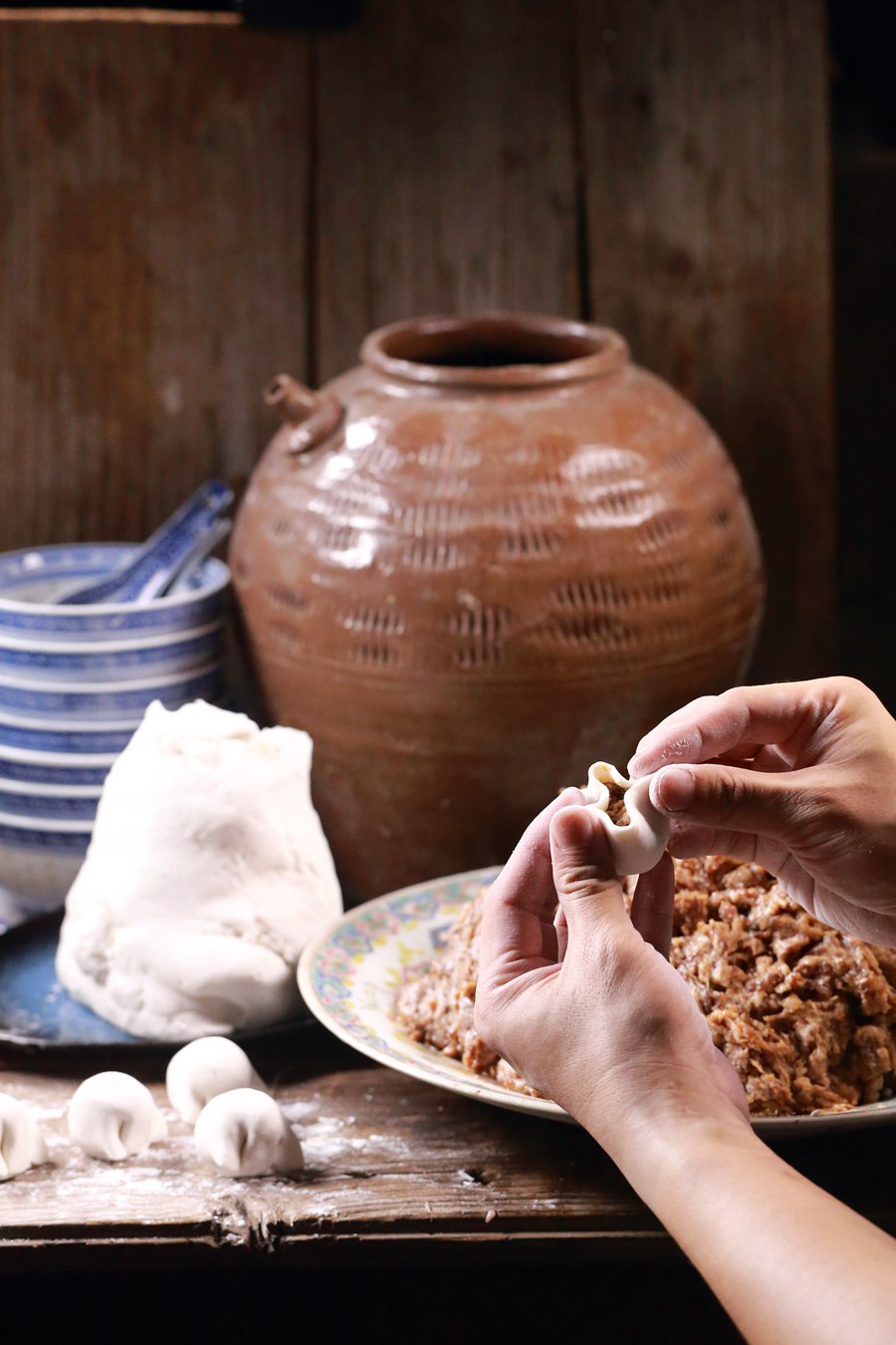 Lin Yingde makes meat stuffing for his restaurant’s special glutinous rice balls. (Photo/Lin Wei)