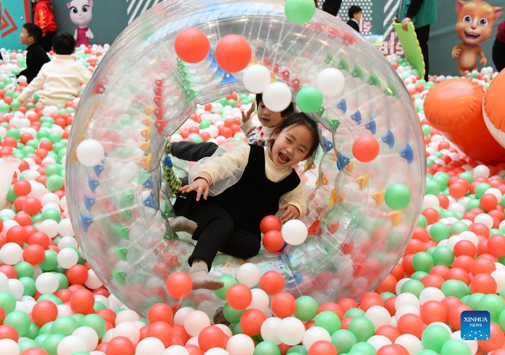Children play at an amusement park in Xianju County, Taizhou, East China's Zhejiang province on Feb 2, 2022. [Photo/Xinhua]