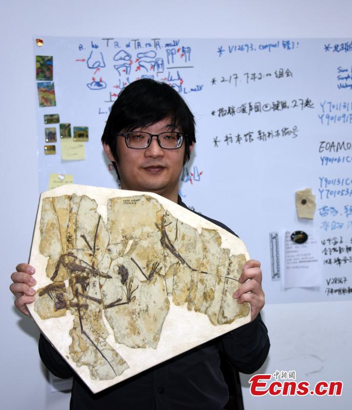 Photo taken on Feb. 16, 2022 shows a fossil specimen of pterosaur in Beijing. (Photo: China News Service/Sun Zifa)