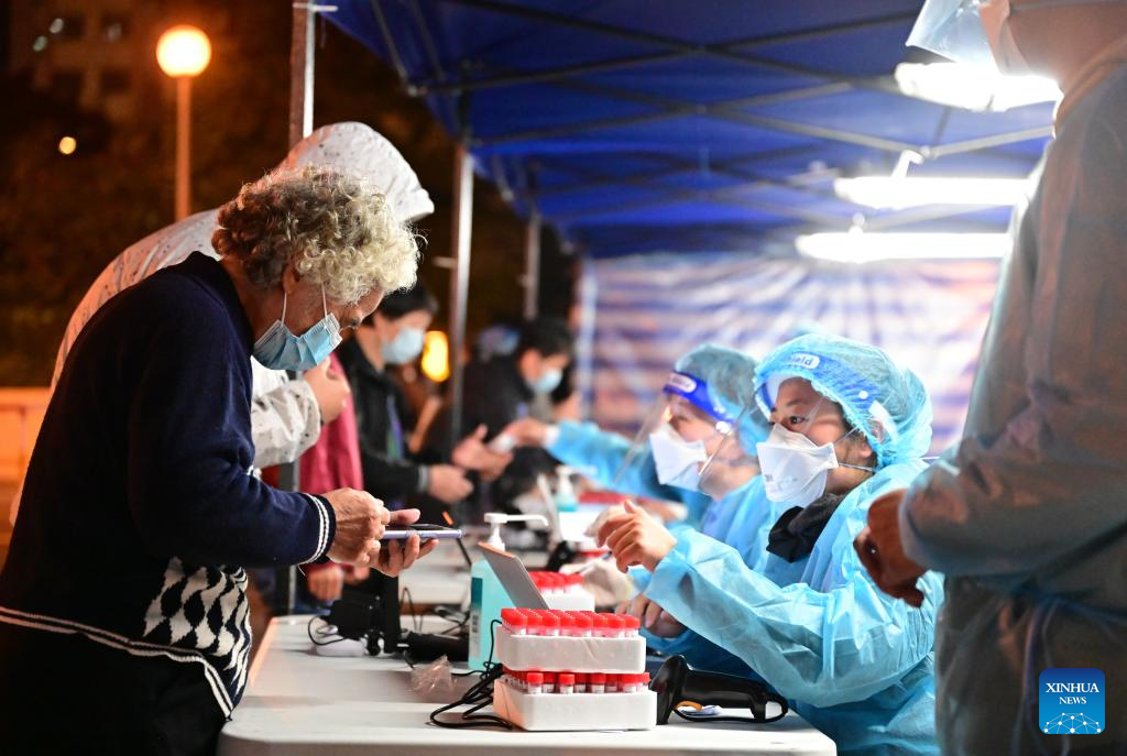 A medical worker registers personal information of a woman at a COVID-19 testing site in Hong Kong, Jan 24, 2022. [Photo/Xinhua]