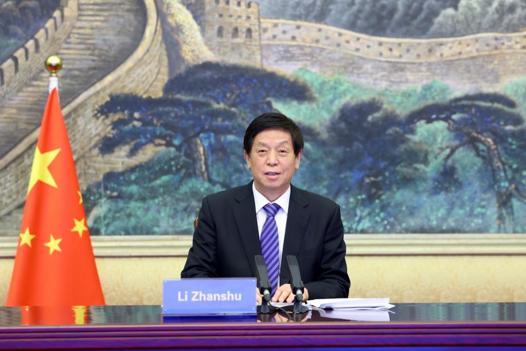 BEIJING, Feb. 17 (Xinhua) -- Li Zhanshu, chairman of the National People's Congress (NPC) Standing Committee, held talks with Speaker of New Zealand Parliament Trevor Mallard via video link on Thursday.