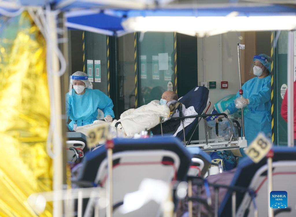 Emergency room medical staff work at a public hospital in Hong Kong, south China, Feb. 18, 2022. (Xinhua/Wang Shen)