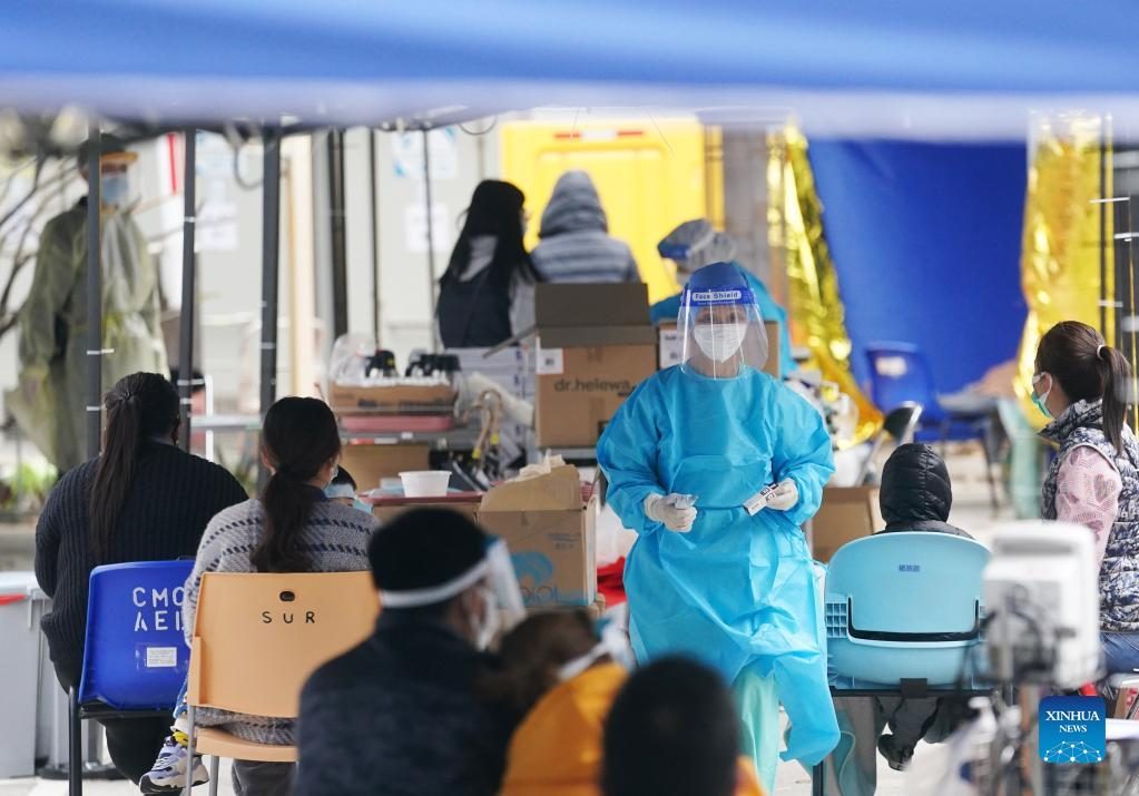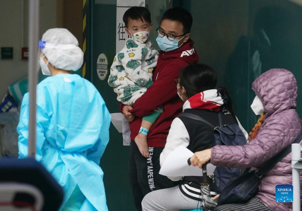 People wait outside the emergency room in a hospital in Hong Kong, south China, Feb. 18, 2022. (Xinhua/Wang Shen)