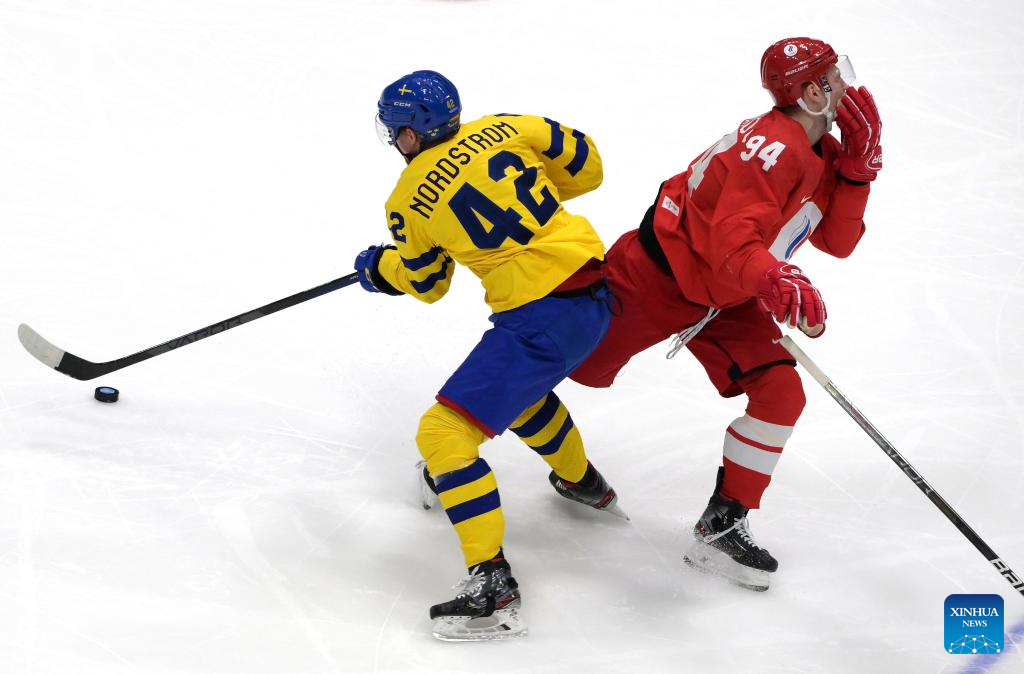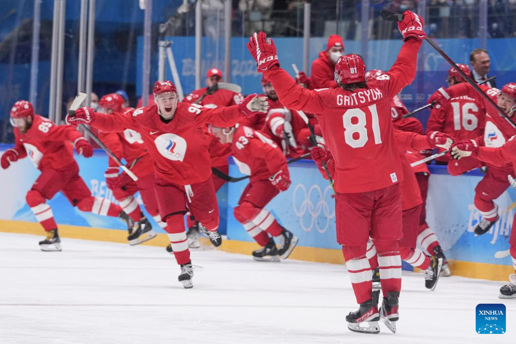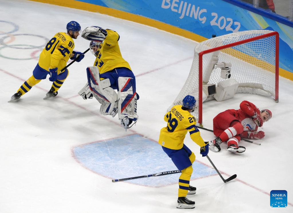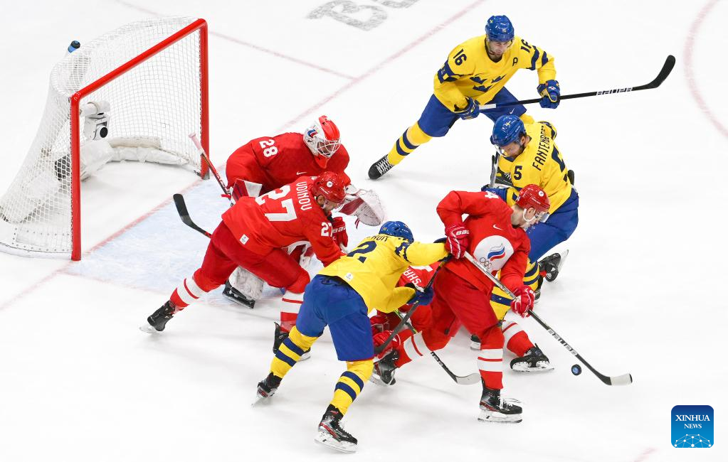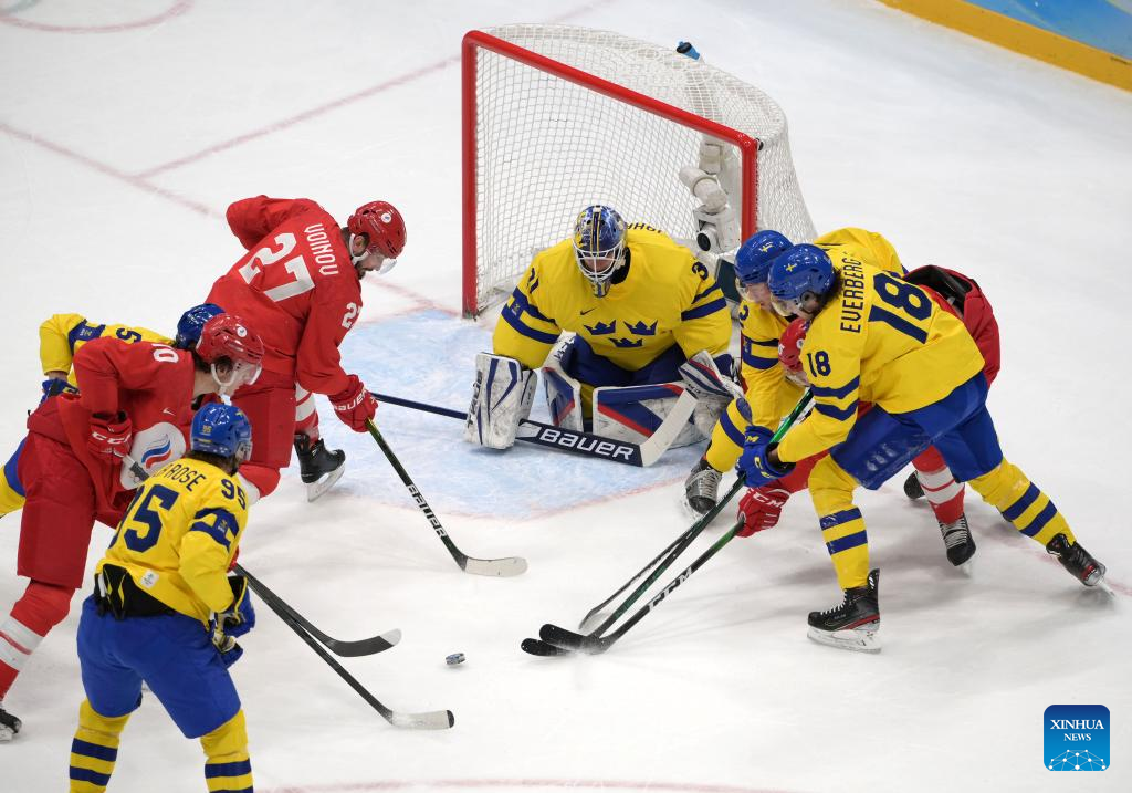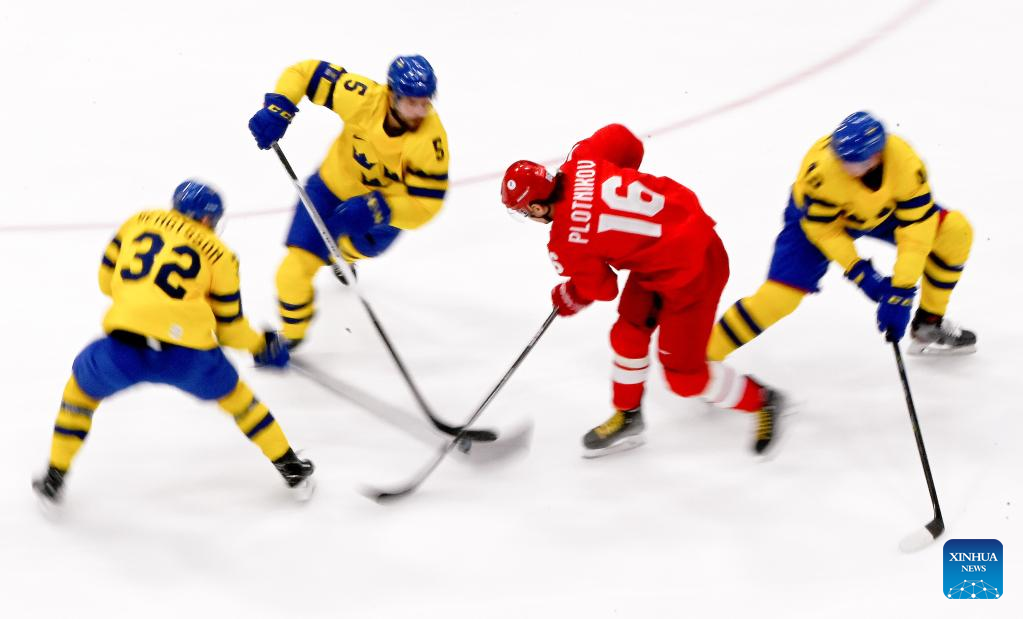 BEIJING, Feb. 18 (Xinhua) -- Defending champions the Russian Olympic Committee (ROC) nailed a thrilling 2-1 shootout victory over Sweden to reach the men's ice hockey final at Beijing 2022 here on Friday.