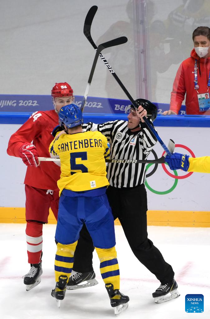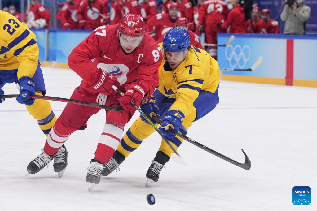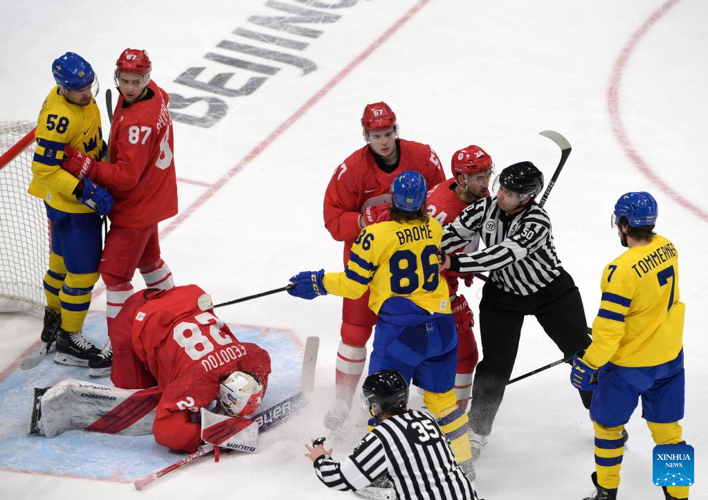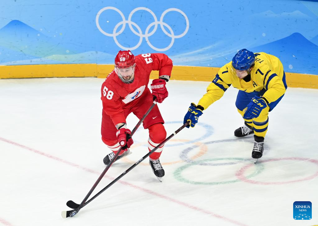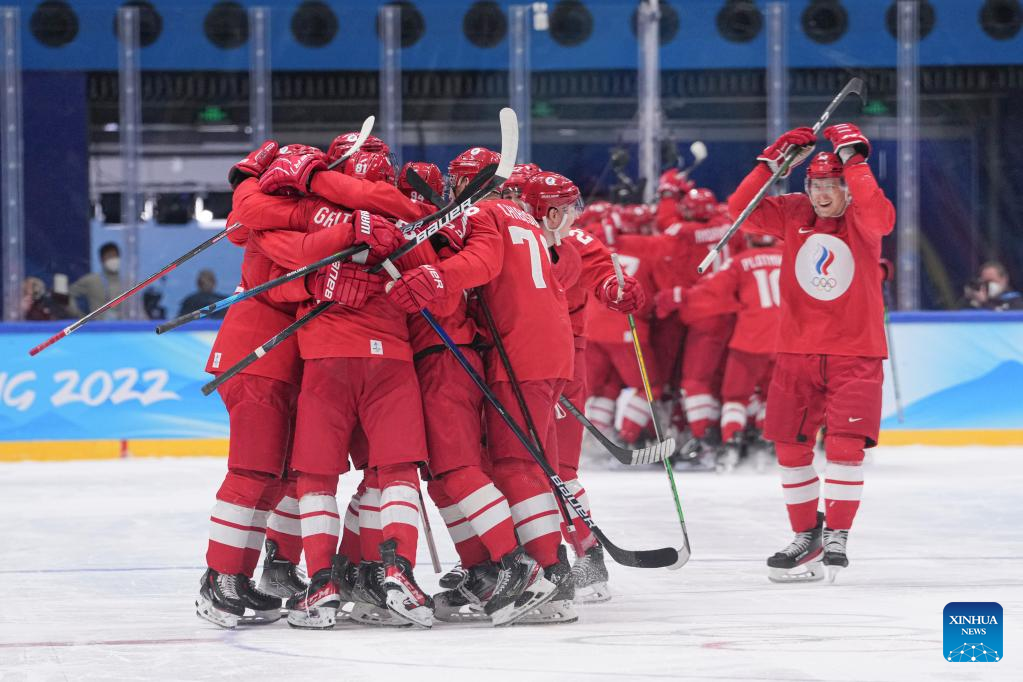 BEIJING, Feb. 18 (Xinhua) -- Defending champions the Russian Olympic Committee (ROC) nailed a thrilling 2-1 shootout victory over Sweden to reach the men's ice hockey final at Beijing 2022 here on Friday.