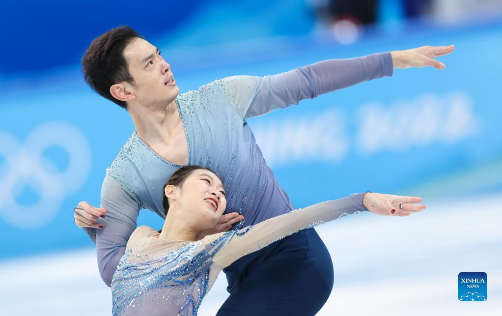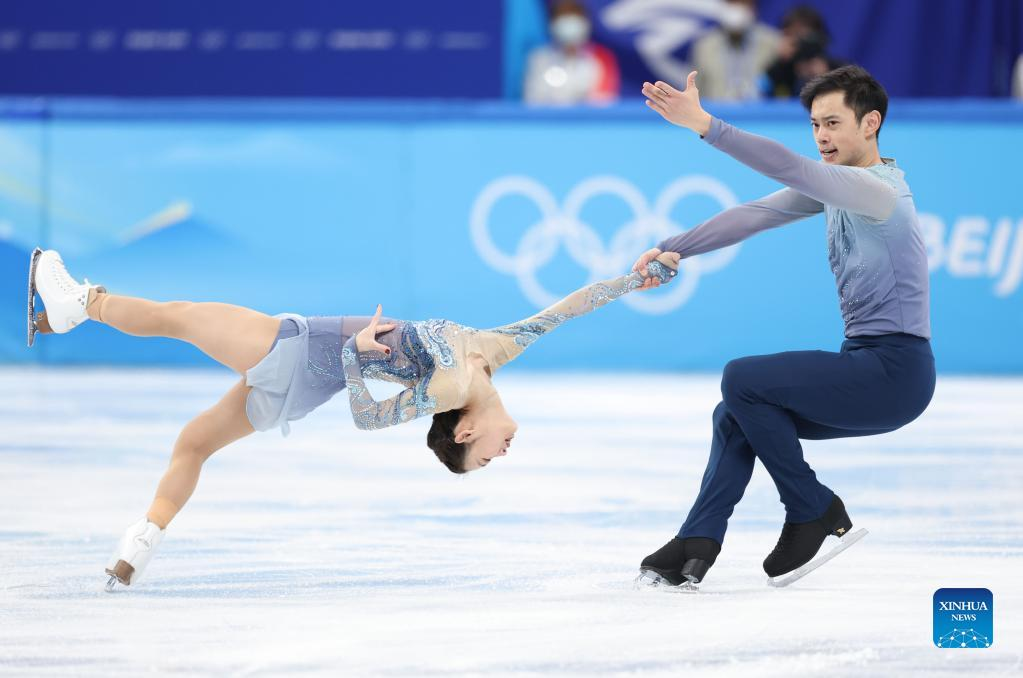 Sui Wenjing (L)/Han Cong of China perform during the figure skating pair skating short program at Capital Indoor Stadium in Beijing, capital of China, Feb. 18, 2022. (Xinhua/Lan Hongguang)