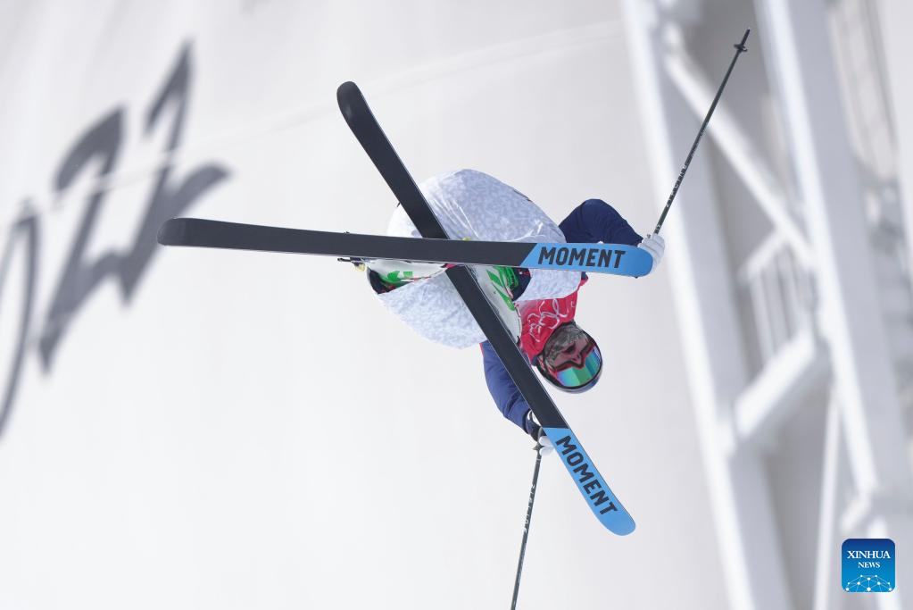 Nico Porteous of New Zealand competes during the freestyle skiing men's freeski halfpipe final of Beijing 2022 Winter Olympics at Genting Snow Park in Zhangjiakou, north China's Hebei Province, Feb. 19, 2022. (Xinhua/Xue Yubin)