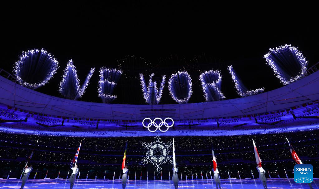 Athletes parade during the closing ceremony of the Beijing 2022 Olympic Winter Games at the National Stadium in Beijing, capital of China, Feb. 20, 2022. (Xinhua/Ding Xu)