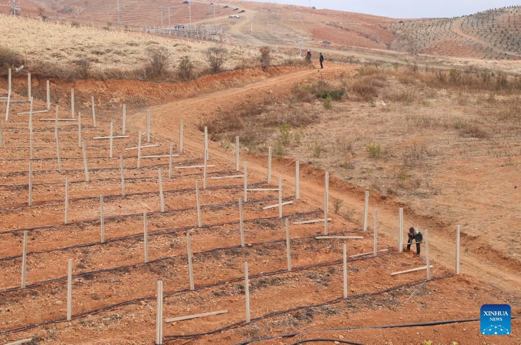 Villagers work at an orchard in Jizushan Town of Binchuan County, southwest China's Yunnan Province, Feb. 21, 2022. Farming activities are in full swing across the country. (Photo by Liang Zhiqiang/Xinhua)