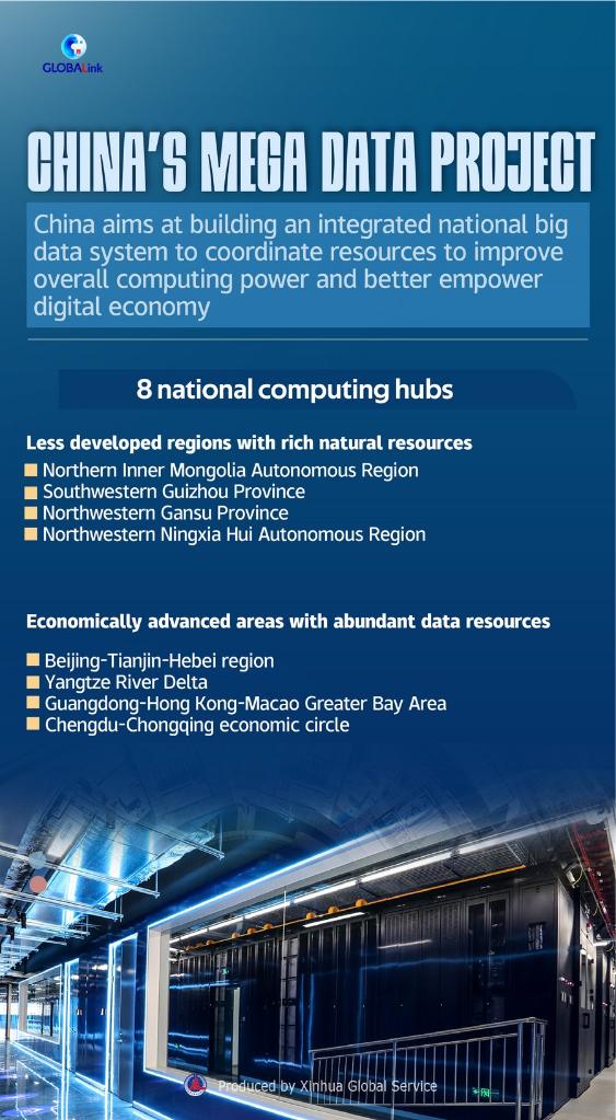 The project involves establishing eight national computing hubs in the country's economic powerhouses and less developed yet resource-rich regions, plus 10 national data center clusters, according to the National Development and Reform Commission (NDRC), the top economic planner.