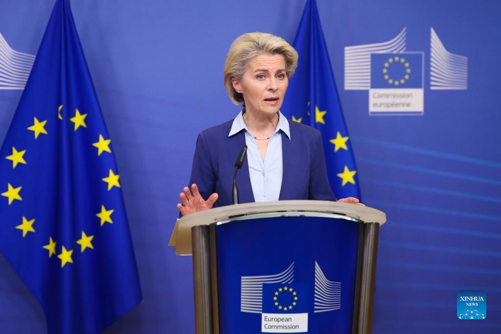 BRUSSELS/PARIS, Feb. 22 (Xinhua) -- The European Union (EU) is ready to take further action against Russia if it continues to escalate the crisis, European Commission President Ursula von der Leyen warned here on Tuesday.
