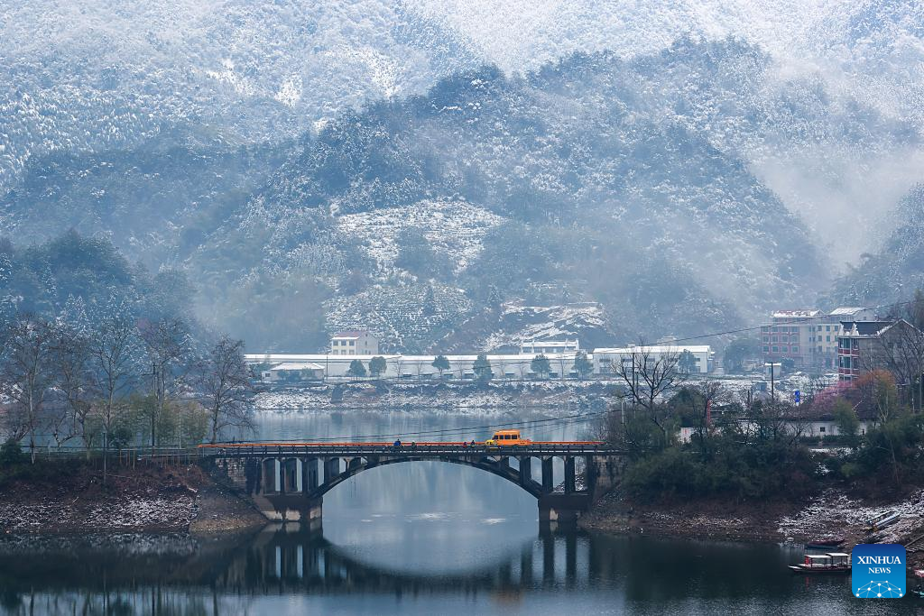 Photo taken on Feb. 23, 2022 shows the snow view of Shitoubu Village of Fuwen Township in Chun'an County, Hangzhou, east China's Zhejiang Province. (Photo by Mao Yongfeng/Xinhua)
