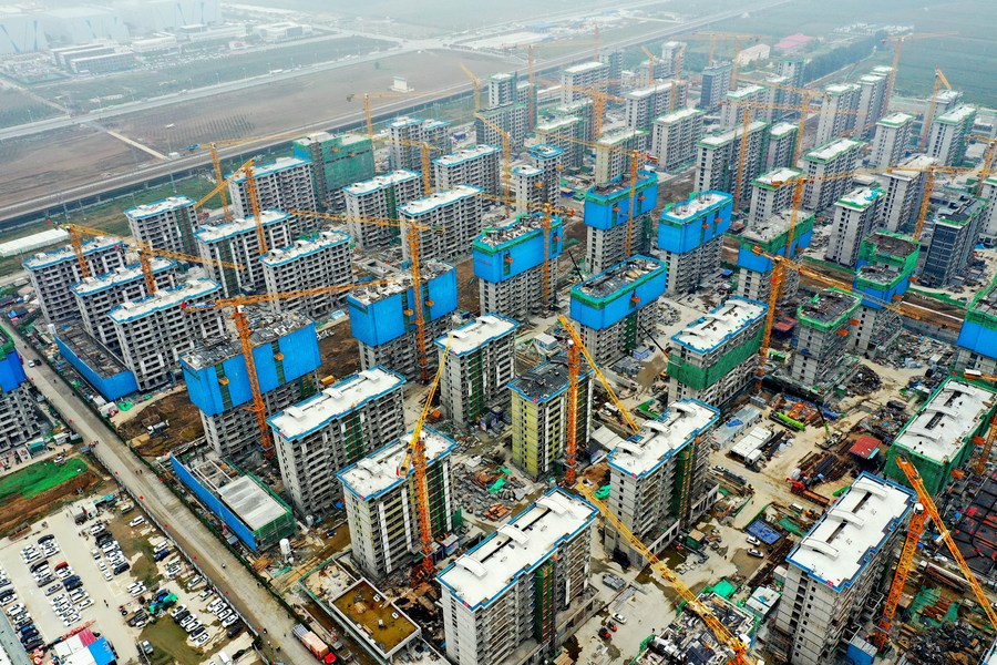 Aerial photo taken on Oct. 1, 2021 shows a construction site in Xiong'an New Area, north China's Hebei Province. (Xinhua/Mu Yu)