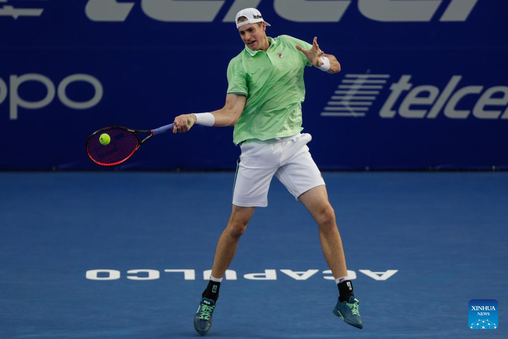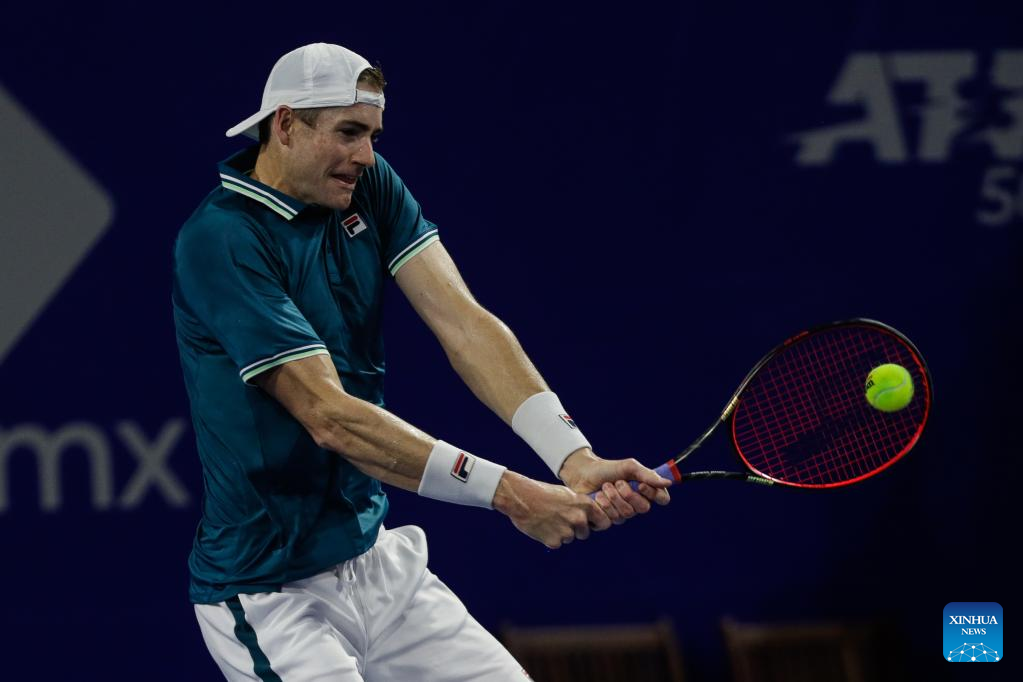 John Isner of the United States hits a return during the men's singles round of 16 match between Cameron Norrie of Great Britain and John Isner of the United States at the 2022 ATP Mexican Open tennis tournament in Acapulco, Mexico, Feb. 23, 2022. (Photo by Francisco Canedo/Xinhua)