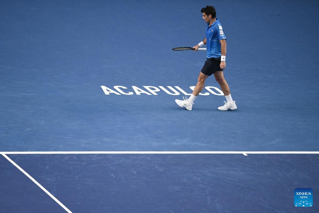 Pablo Andujar of Spain reacts during the men's singles round of 16 match between Daniil Medvedev of Russia and Pablo Andujar of Spain at the 2022 ATP Mexican Open tennis tournament in Acapulco, Mexico, Feb. 23, 2022. (Xinhua/Xin Yuewei)