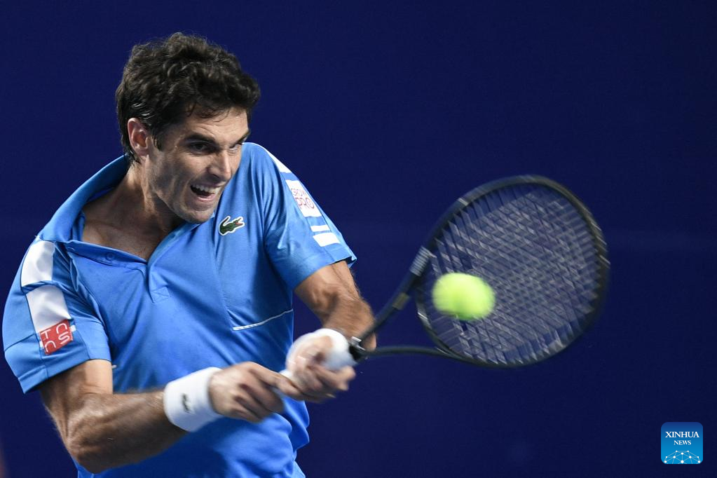 Pablo Andujar of Spain hits a return during the men's singles round of 16 match between Daniil Medvedev of Russia and Pablo Andujar of Spain at the 2022 ATP Mexican Open tennis tournament in Acapulco, Mexico, Feb. 23, 2022. (Xinhua/Xin Yuewei)