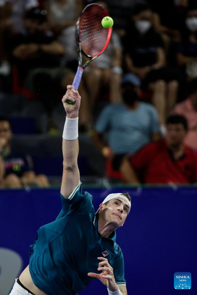 John Isner of the United States serves during the men's singles round of 16 match between Cameron Norrie of Great Britain and John Isner of the United States at the 2022 ATP Mexican Open tennis tournament in Acapulco, Mexico, Feb. 23, 2022. (Photo by Francisco Canedo/Xinhua)