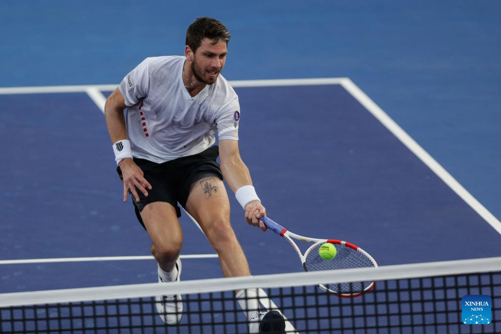 Cameron Norrie of Great Britain hits a return during the men's singles round of 16 match between Cameron Norrie of Great Britain and John Isner of the United States at the 2022 ATP Mexican Open tennis tournament in Acapulco, Mexico, Feb. 23, 2022. (Photo by Francisco Canedo/Xinhua)