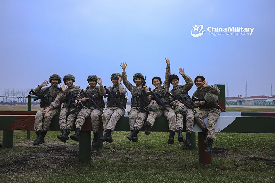 Soldiers assigned to an all-female special operations element of the Leishen (Thor) Commando Unit with the PLA airborne force pose for a group photo after a hostage rescue training exercise recently. (eng.chinamil.com.cn/Photo by Yang Yuewang)